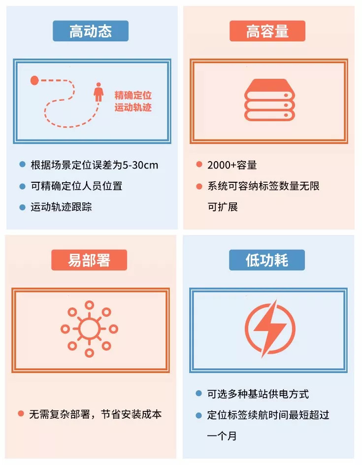 在眾多定位技術(shù)中,UWB技術(shù)具有傳輸速率高,發(fā)射功率低,傳統(tǒng)能力強等特點,無論是從定位精度、實時性,還是穩(wěn)定性、容量大小等方面,UWB技術(shù)都完美的符合工業(yè)安全對定位技術(shù)的需求。工業(yè)場景的安全定位服務(wù),主要針對的是人員與設(shè)備,相比其他技術(shù),UWB更加適用。